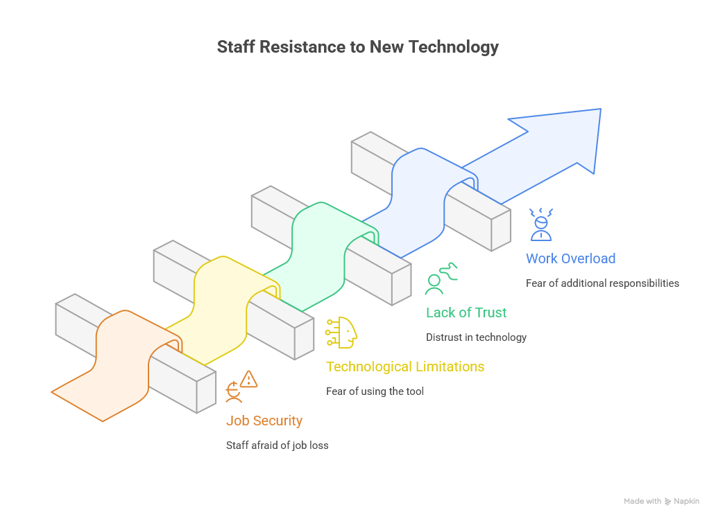 Below are the most common concerns expressed by medical registration staff regarding the planned implementation of a voicebot for patient service. It’s crucial for clinic managers to recognize and understand their employees’ fears and then skillfully guide the entire implementation process.