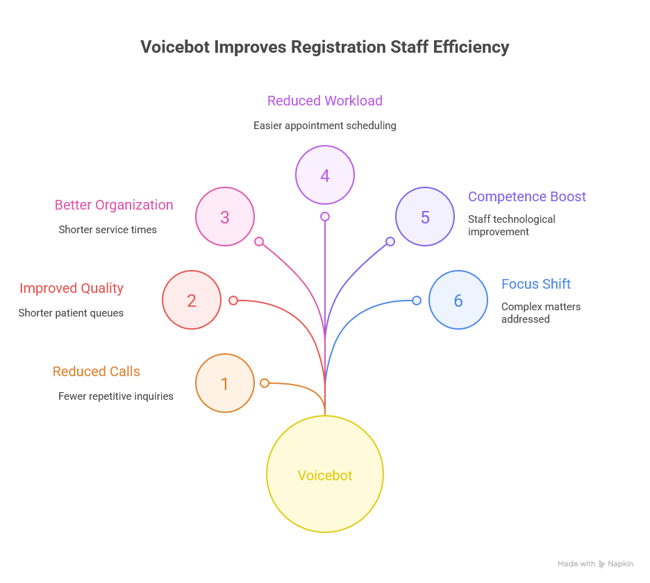 The main benefits experienced by registration staff after implementing a voicebot include: