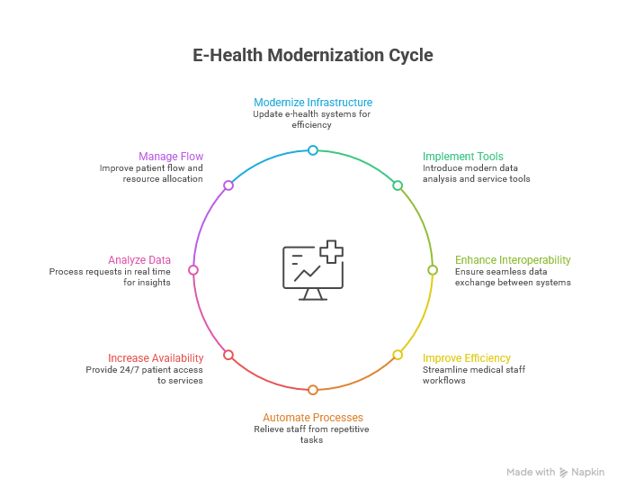 The primary goal of component D1.1.2 is to modernize e-health infrastructure and implement modern tools for data analysis and patient service. The program places strong emphasis on interoperability and improving the efficiency of medical staff.
